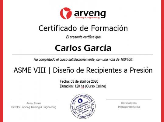 A la finalización del curso se entregará un certificado de aprobación emitido por ARVENG.