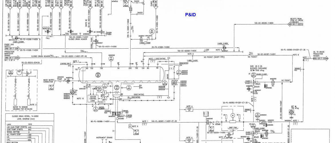 Los Diagramas de Tuberías e Instrumentación (P&ID’s) a menudo se pueden confundir con los Diagramas de Flujo de Procesos (PFD’s). Los P&ID y los PFD generalmente utilizan la misma notación para los equipos. Sin embargo, sirven para diferentes propósitos y brindan información diferente. El propósito de un PFD es mostrar exactamente lo que hace un proceso durante la operación, y un P&ID muestra todos los controladores, tipos de válvulas y los materiales que se utilizan en la construcción. Un PFD muestra la conectividad y las relaciones entre los principales equipos y unidades de un proceso. Sin embargo, también incluye valores de diseño tabulados, como condiciones de funcionamiento normales, mínimas y máximas que no contiene un P&ID. Un PFD no incluye sistemas de tuberías menores u otros componentes menores que normalmente incluye un P&ID.